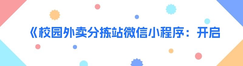 - 《校园外卖分拣站微信小程序:开启便捷校园生活新时代》