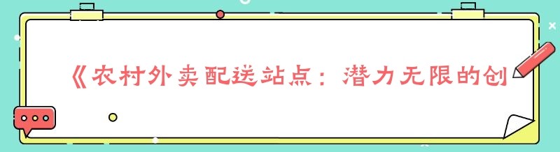 《农村外卖配送站点:潜力无限的创业新机遇》