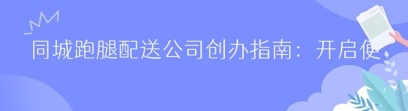 在当今社会,随着人们生活节奏的加快和消费需求的多样化,同城跑腿配送服务迎来了蓬勃发展的机遇。创办一家同城跑腿配送公司,不仅能够满足市场需求,还能为创业者带来可观的收益。那么,如何才能成功创办一家同城跑腿配送公司呢?本文将为您详细介绍。