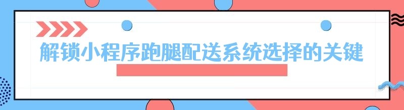 解锁小程序跑腿配送系统选择的关键密码