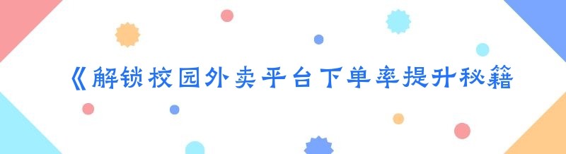 《解锁校园外卖平台下单率提升秘籍》