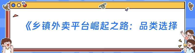 《乡镇外卖平台崛起之路:品类选择的奥秘》