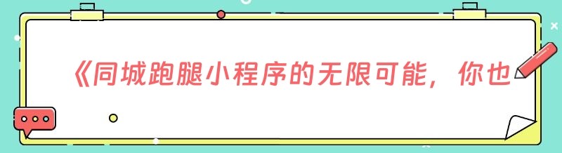《同城跑腿小程序的无限可能,你也能拥有!》