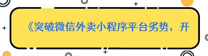 《突破微信外卖小程序平台劣势,开启成功之路》