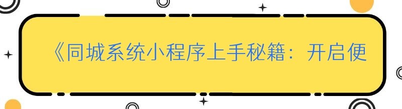 《同城系统小程序上手秘籍:开启便捷生活新篇章》