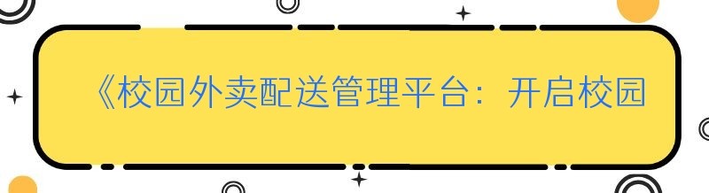 《校园外卖配送管理平台:开启校园便捷生活新时代》