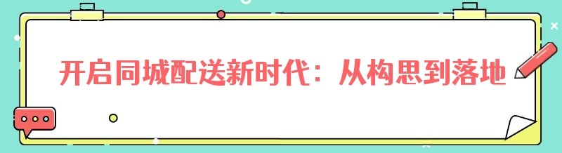 开启同城配送新时代:从构思到落地的全攻略