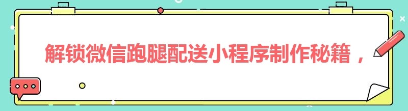 编辑 解锁微信跑腿配送小程序制作秘籍,你还在等什么?