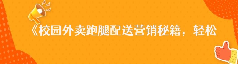《校园外卖跑腿配送营销秘籍,轻松搞定订单增长!》