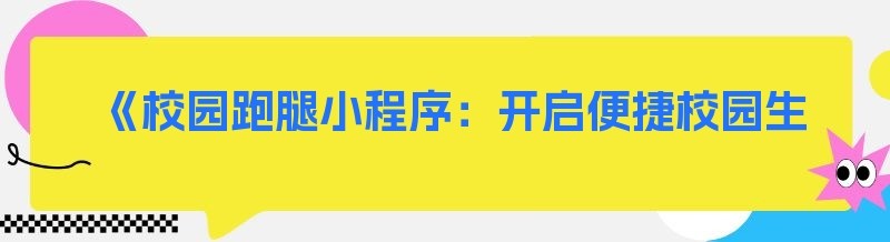 《校园跑腿小程序:开启便捷校园生活新时代》