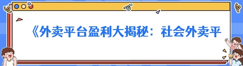 《外卖平台盈利大揭秘:社会外卖平台VS微信外卖小程序平台,谁更胜一筹?》