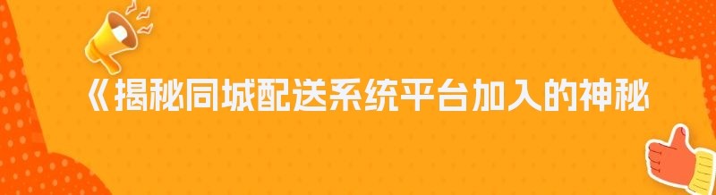 《揭秘同城配送系统平台加入的神秘面纱》