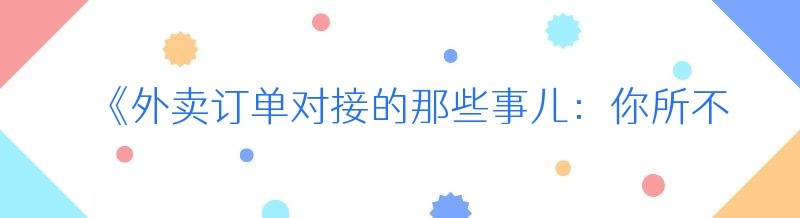 《外卖订单对接的那些事儿:你所不知道的真相》