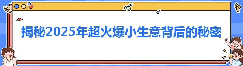 揭秘2025年超火爆小生意背后的秘密,一分钟让你全知晓!