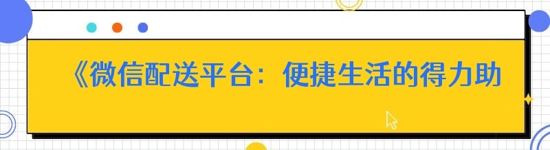《微信配送平台:便捷生活的得力助手,你还不赶紧收藏?》