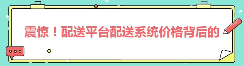 震惊!配送平台配送系统价格背后的秘密大揭秘
