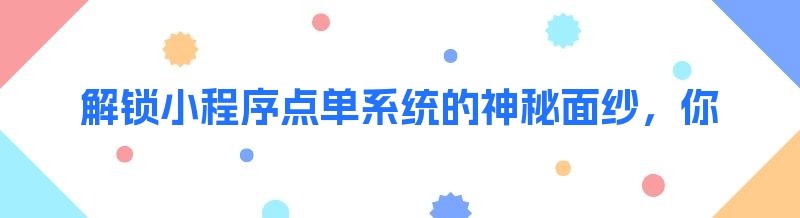 解锁小程序点单系统的神秘面纱,你想知道的都在这里!
