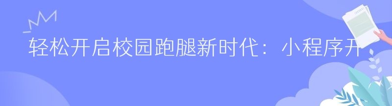 轻松开启校园跑腿新时代:小程序开发秘籍大公开