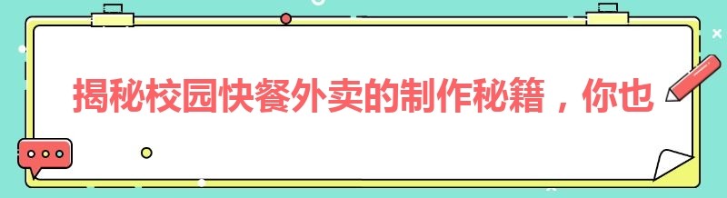 揭秘校园快餐外卖的制作秘籍,你也能轻松上手!