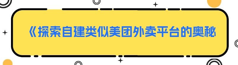 在当今数字化时代,外卖行业蓬勃发展,美团等外卖平台成为人们生活中不可或缺的一部分。那么,有没有可能自己打造一个类似美团的外卖平台呢?答案是肯定的!接下来,我们就来深入解析一下如何实现这一目标。