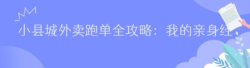 小县城外卖跑单全攻略:我的亲身经历大揭秘