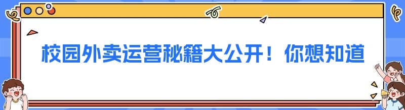校园外卖运营秘籍大公开!你想知道的都在这里