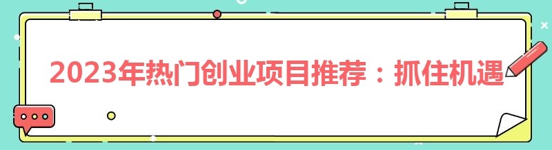 2023年热门创业项目推荐:抓住机遇,成就未来