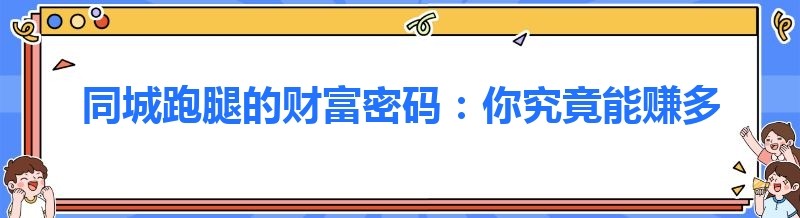 在当今社会,随着生活节奏的加快和人们需求的多样化,同城跑腿行业如雨后春笋般蓬勃发展。越来越多的人开始关注这个看似简单却充满商机的行业,心中不禁涌起一个疑问:做同城跑腿到底能赚多少钱呢?