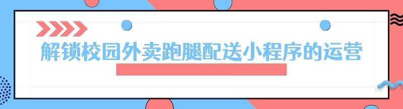 解锁校园外卖跑腿配送小程序的运营密码