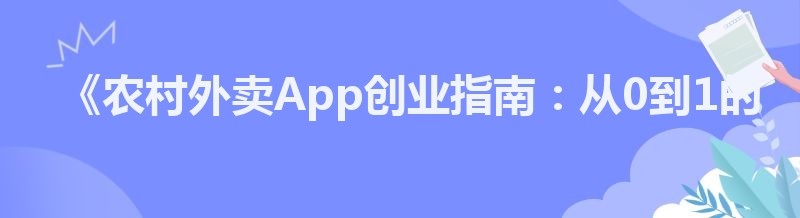《农村外卖App创业指南:从0到1的实用攻略》