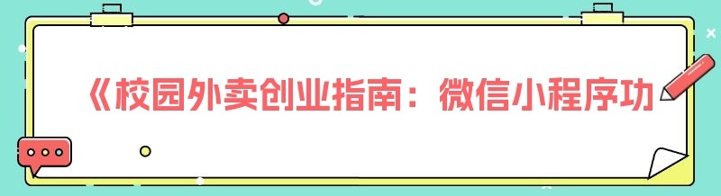 《校园外卖创业指南:微信小程序功能全解析》