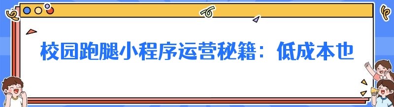 校园跑腿小程序运营秘籍:低成本也能打造成功平台(新手必看)