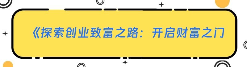 《探索创业致富之路:开启财富之门的关键解析》