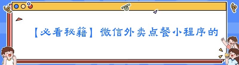 【必看秘籍】微信外卖点餐小程序的制作全攻略