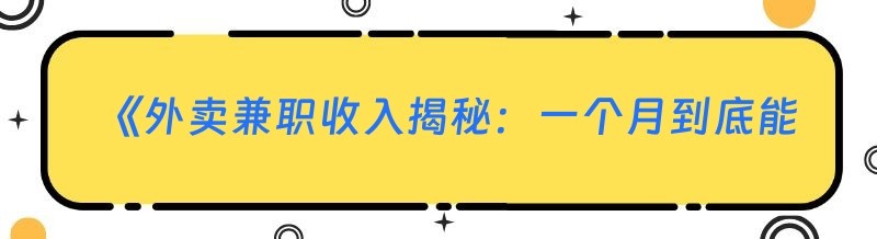 《外卖兼职收入揭秘:一个月到底能挣多少?》
