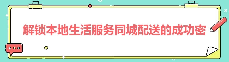 编辑 解锁本地生活服务同城配送的成功密码