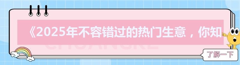在商业的广阔天地中,每一年都有新的机遇和趋势涌现。2025年,哪些生意值得我们去尝试和探索呢?让我们一起来揭开这些神秘的面纱。