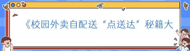 《校园外卖自配送“点送达”秘籍大公开》
