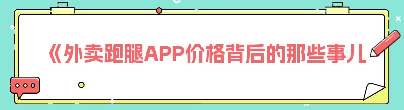 《外卖跑腿APP价格背后的那些事儿》