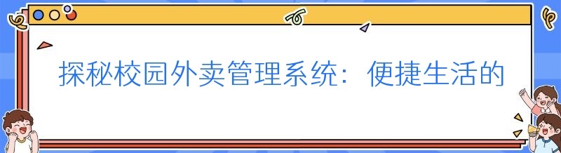 在大学校园里,外卖已经成为了许多学生日常生活中不可或缺的一部分。无论是因为课程繁忙没时间去食堂,还是想要换换口味,外卖都能满足学生们的需求。然而,随着校园外卖市场的不断扩大,如何高效地管理外卖订单、配送和食品安全等问题也逐渐凸显出来。这时候,校园外卖管理系统就应运而生了,它就像是一位幕后英雄,默默地为校园外卖的顺利运营提供着支持。今天,就让我们一起走进校园外卖管理系统,看看它究竟有哪些神奇之处。