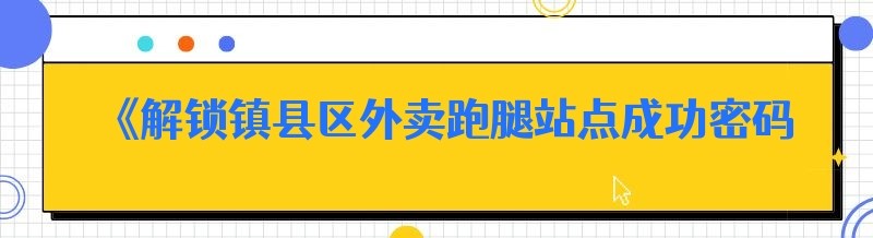 《解锁镇县区外卖跑腿站点成功密码:你必须知道的关键要点》
