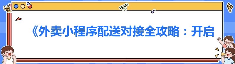 《外卖小程序配送对接全攻略:开启高效配送新时代》