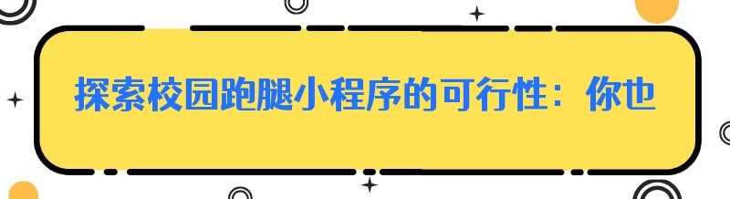探索校园跑腿小程序的可行性:你也能成为校园服务新势力