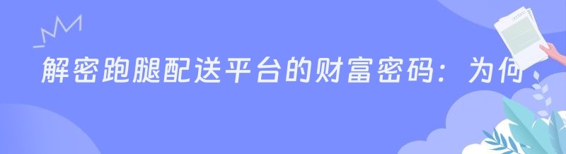 解密跑腿配送平台的财富密码:为何如此火爆?