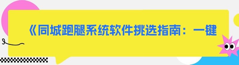 《同城跑腿系统软件挑选指南:一键搞定的秘诀》