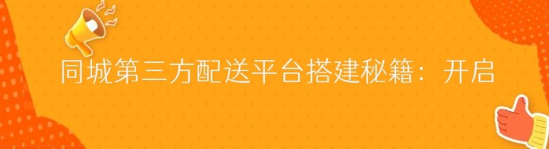 同城第三方配送平台搭建秘籍:开启高效物流新时代