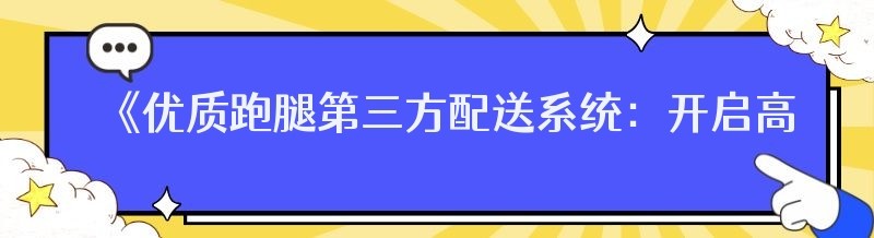 《优质跑腿第三方配送系统:开启高效配送新时代》