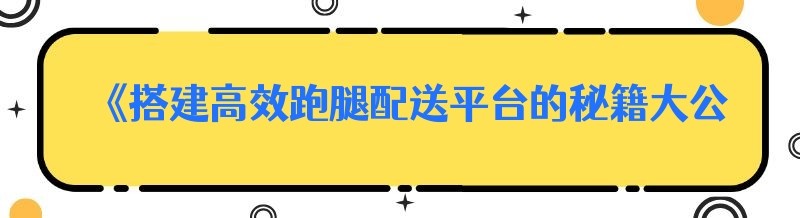 《搭建高效跑腿配送平台的秘籍大公开》