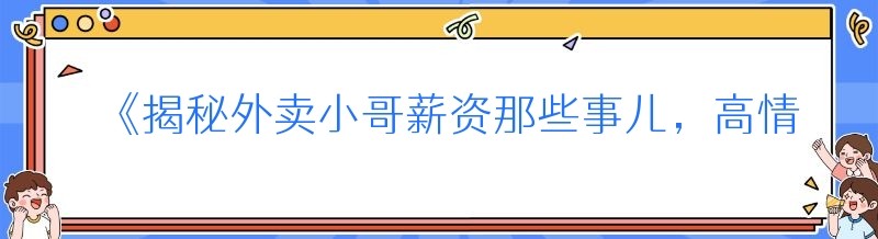 《揭秘外卖小哥薪资那些事儿,高情商回答看过来》