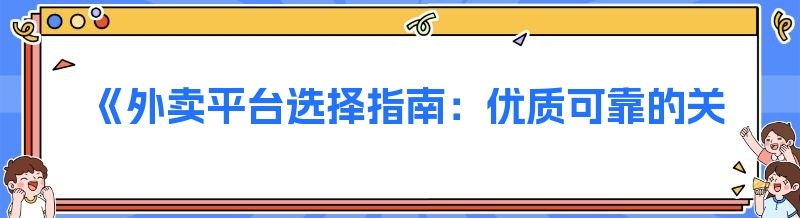 《外卖平台选择指南:优质可靠的关键要素》